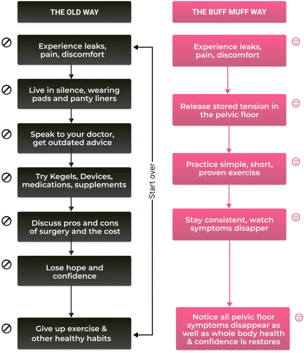 No matter your age, no matter your symptoms, The Buff Muff Method will help you retrain your body, regain control, and feel like yourself again.